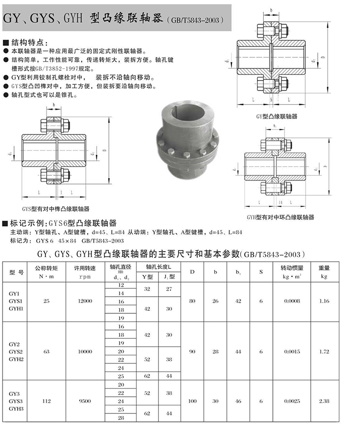 瑞安市寶德隆機械配件有限公司提供GY、GYS、GYH型凸緣聯軸器具有拆裝方便,快速安裝等特點,廣泛用于連接/固定輪轂孔和零件的軸,例如齒輪,錐齒輪,鏈輪,葉輪,凸輪,皮帶輪和飛輪等軸的聯結固定,咨詢電話:18906872378