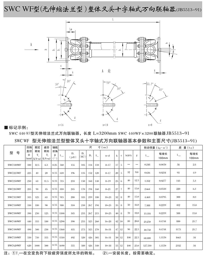 瑞安市寶德隆機械配件有限公司提供SWC WF型(無伸縮法蘭型)整體叉頭十字軸式萬向聯軸器具有拆裝方便,快速安裝等特點,廣泛用于連接/固定輪轂孔和零件的軸,例如齒輪,錐齒輪,鏈輪,葉輪,凸輪,皮帶輪和飛輪等軸的聯結固定,咨詢電話:18906872378