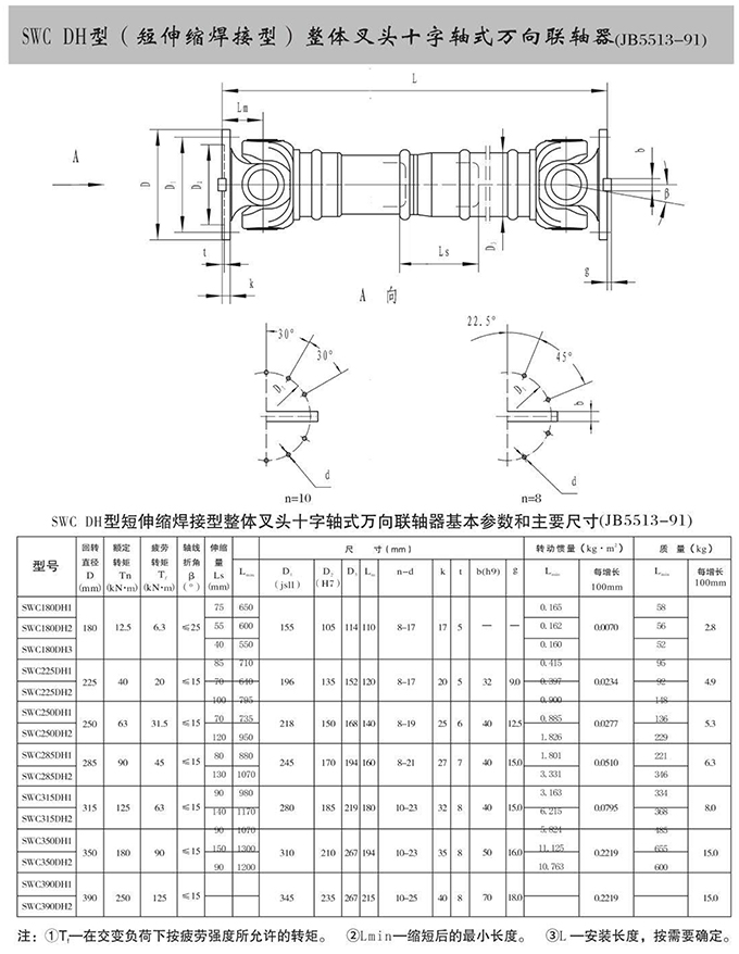 瑞安市寶德隆機械配件有限公司提供SWC DH型(短伸縮焊接型)整體叉頭十字軸式萬向聯軸器具有拆裝方便,快速安裝等特點,廣泛用于連接/固定輪轂孔和零件的軸,例如齒輪,錐齒輪,鏈輪,葉輪,凸輪,皮帶輪和飛輪等軸的聯結固定,咨詢電話:18906872378