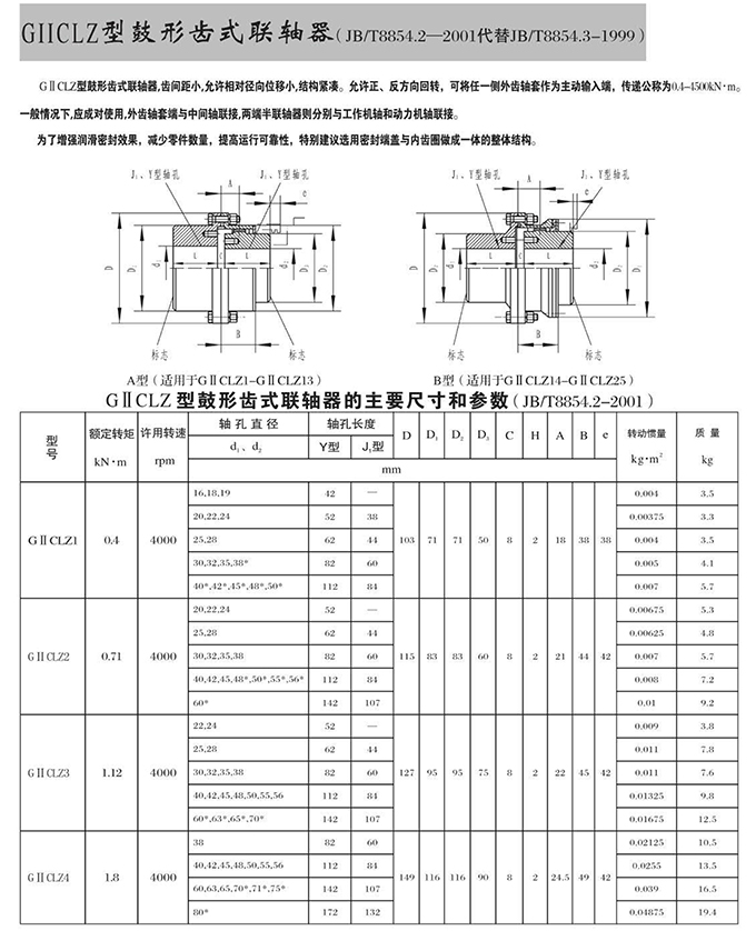 瑞安市寶德隆機(jī)械配件有限公司提供GⅡCLZ型鼓形齒式聯(lián)軸器具有拆裝方便,快速安裝等特點(diǎn),廣泛用于連接/固定輪轂孔和零件的軸,例如齒輪,錐齒輪,鏈輪,葉輪,凸輪,皮帶輪和飛輪等軸的聯(lián)結(jié)固定,咨詢電話:18906872378